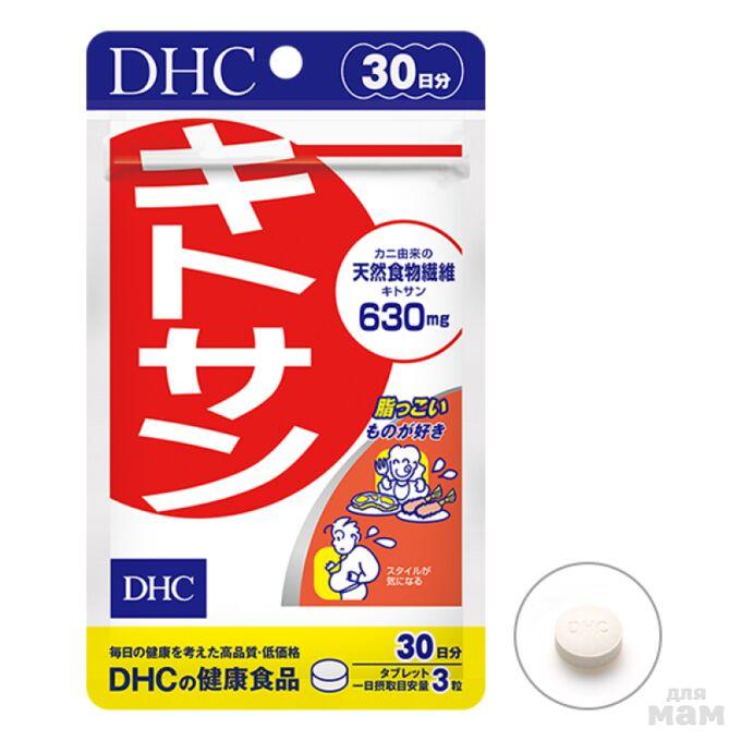 Биодобавка DHC Хитозан содержит хитозан, добытый из хитина панциря красноногих крабов, женьшеневый экстракт и экстракт пророщенного риса. Содержит 585 мг пищевых волокон (клетчатка) и рекомендуется для тех, кто любит жирную пищу. Рекомендуется принимать после приема жирной пищи.