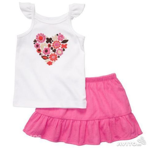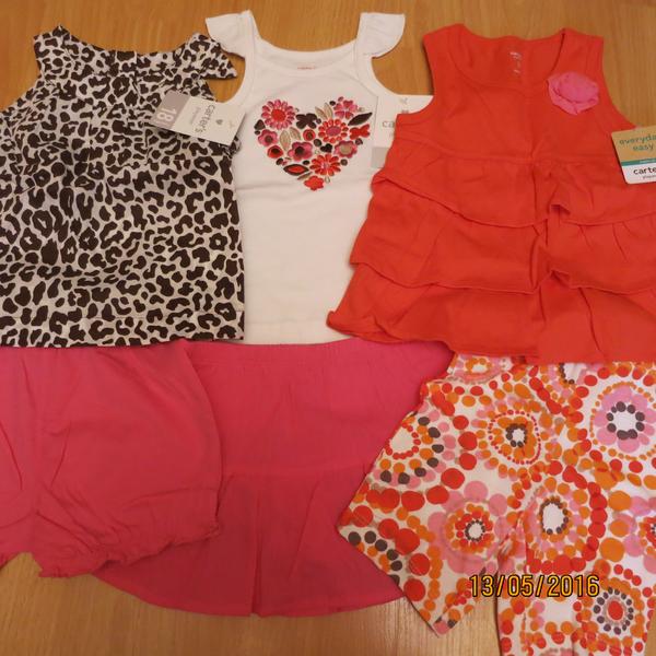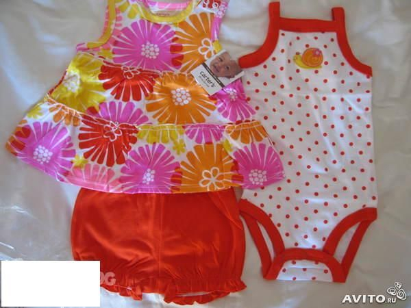11.Новый костюм Carters (США) 18 мес. Хлопок. 750 - руб. Маечка свободного кроя-с модным принтом и кокетливым бантиком на плече. Для лета КРАСОТА!
