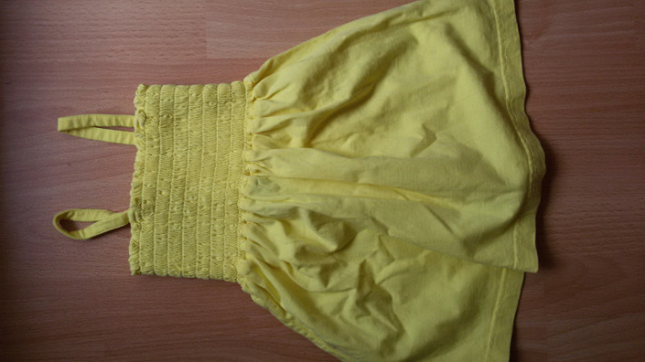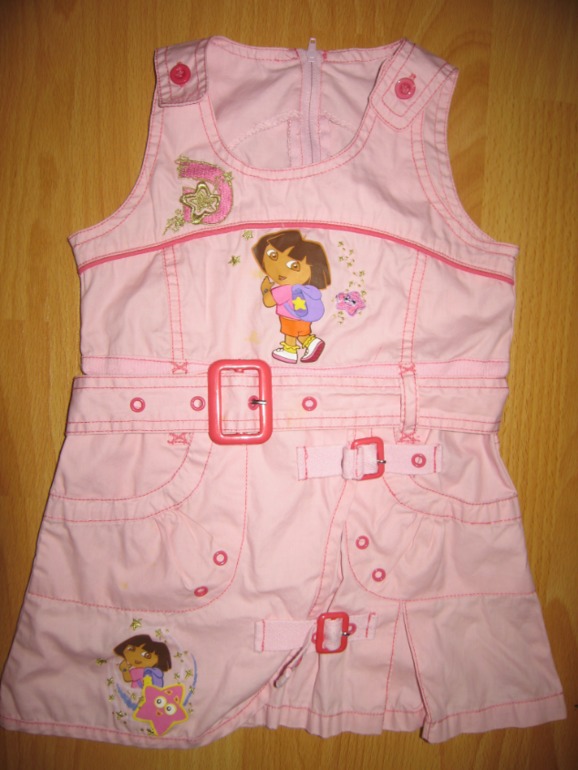 9. Сарафан р-р 2А, мы носили в 1.5- 2 года. отличное состояние, но на есть 2 еле заметных желтых пятнышка от гуаши (на фото видно, где Дора) - 250 руб.