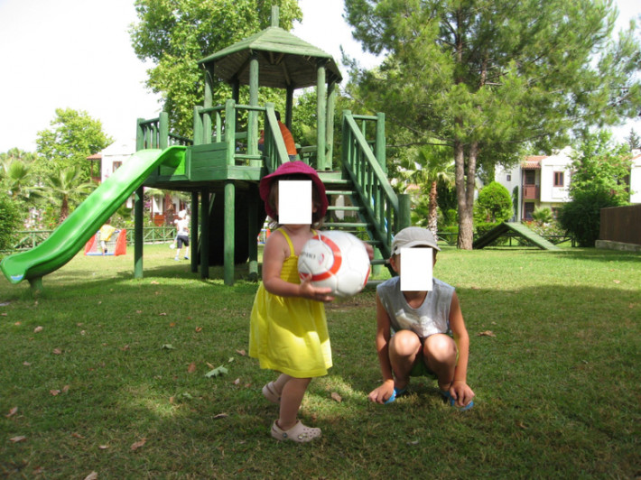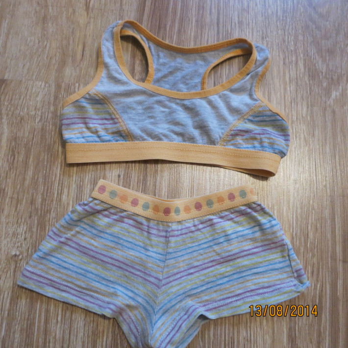 6. Хлопковый костюм, маркировка 4 г. носили в 2 и 3 г. на пляже. -100 руб.