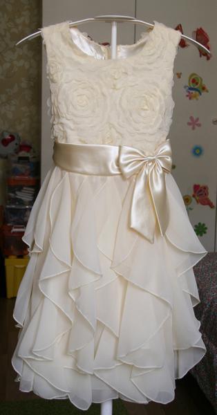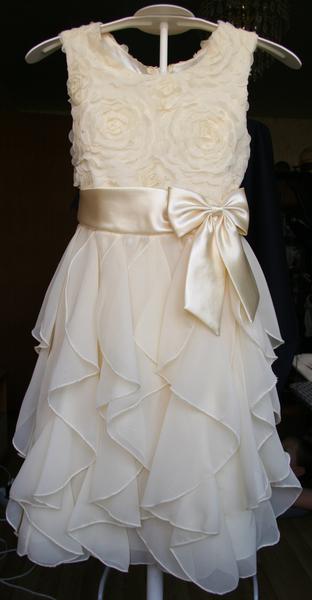 нереально красивое платье, размер на ярлыке 7 лет, но нам на рост 122 см в 6,2 года оно было уже коротковато, покупала специально на фотосессию. состояние нового, одевали 2 раза ровно, один раз на утренник в саду и один раз на фотосессию.
