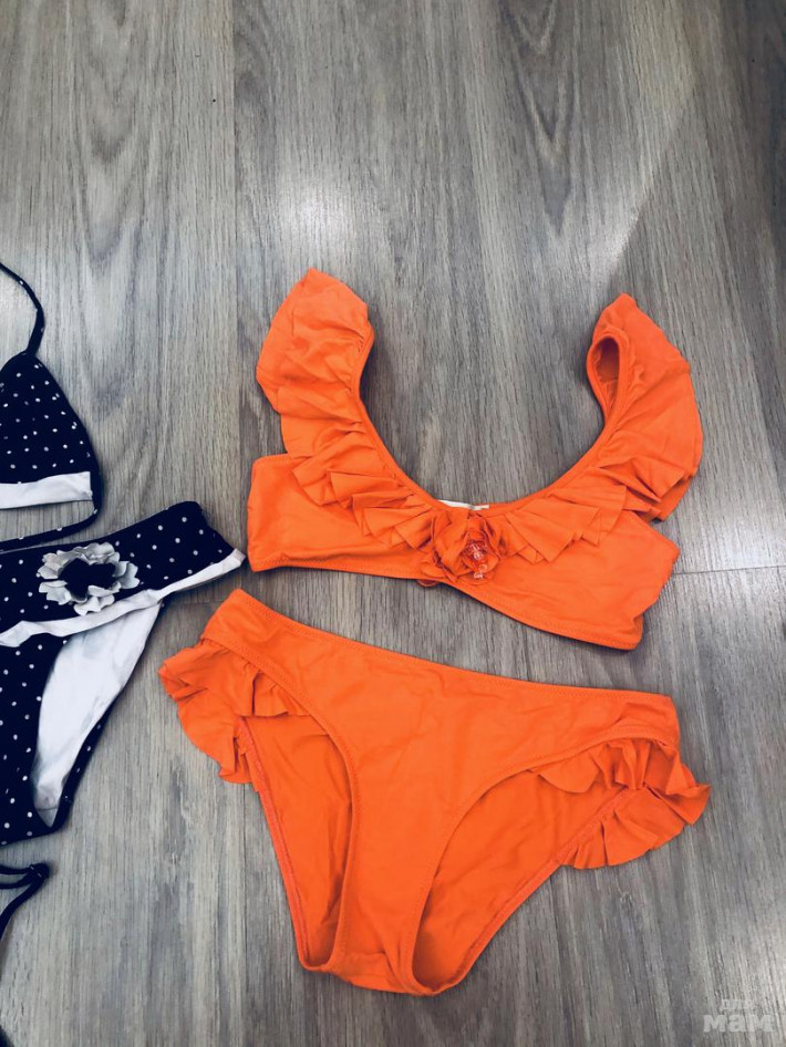 1. Твин сет ярко оранжевый р. 14, 164, маломерит трусы талия 31, длина 21, топ 28 под грудью, лямка 27 ( стрейч, все тянется)