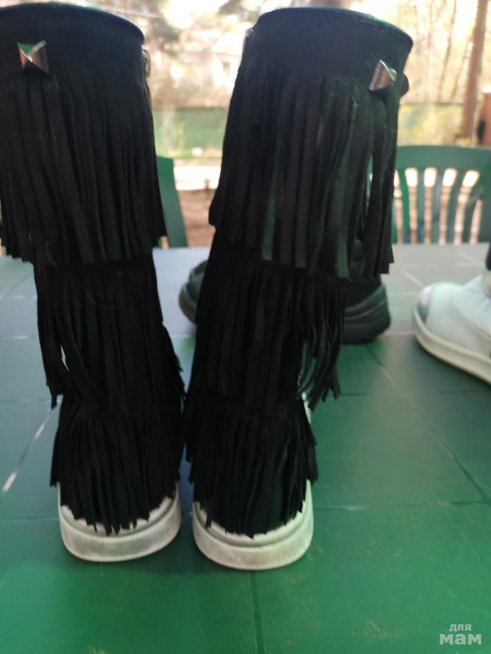 Белые и чёрные дутики зима, чёрные Фан Фан с висюльками холодная осень.