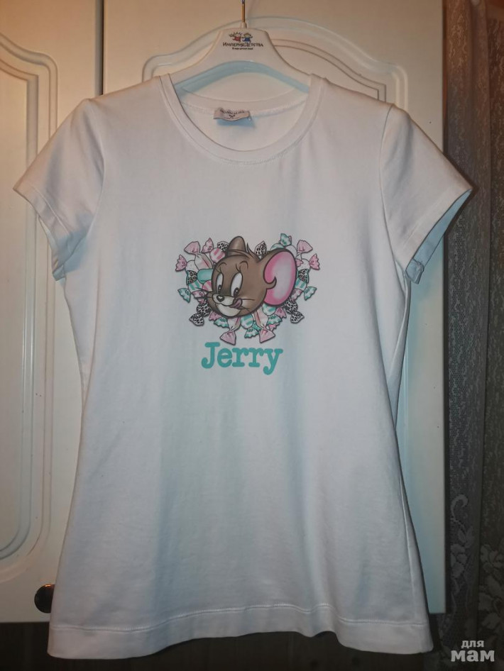 Футболка Моннализа р.М на 166см, МОЛОЧНАЯ , не белая)В хорошем состоянии.Длина по спинке 59см, ширина под мышками 42см, материал мягкий, комфортный еще чуть тянеться.1600р