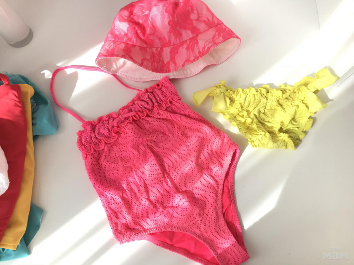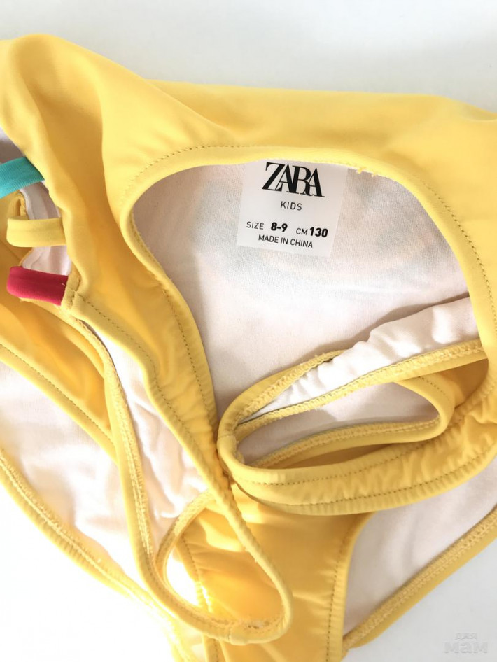 Купальник желтый zara, шикарного качества, но почти не тянется, поэтому надевали 1-2раза в бассейн и стал мал(( 700р