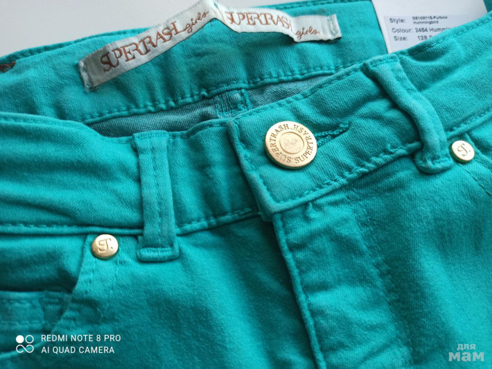 Пристрою новые брючки ярко-бирюзового цвета, на фото неверно цвет передан. Ярче и сочнее, и именно зелено-голубые.