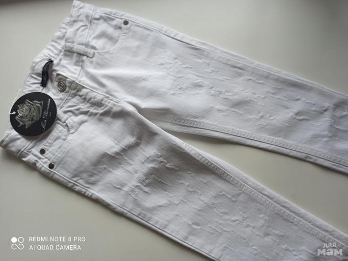 Шикарные новые джинсы с "мнимыми" порезами от итальянского бренда Miss Blumarine на 8 лет. Стильные, красивые и высокого качества, как у всех вещей этого бренда.