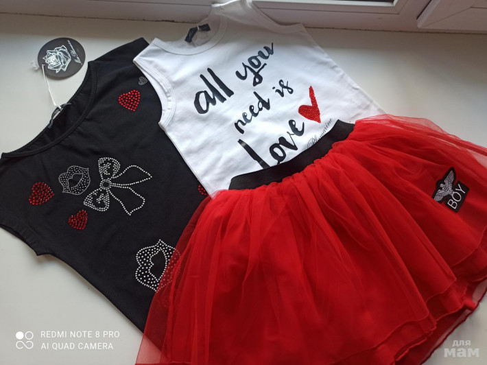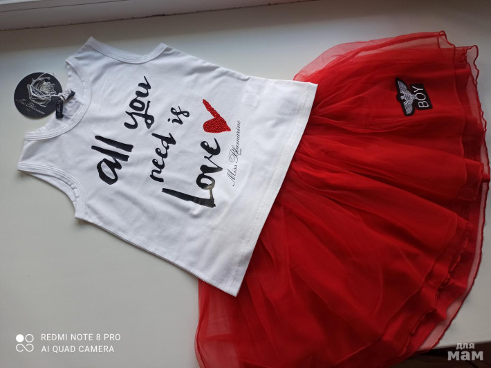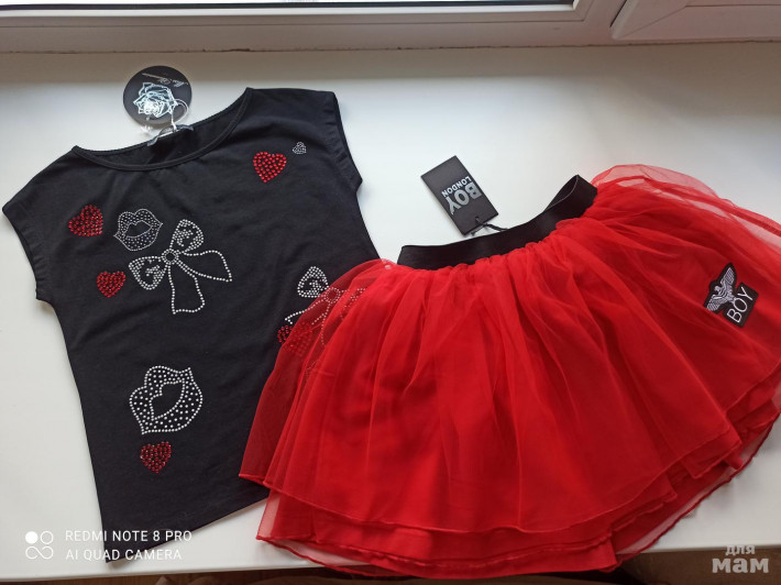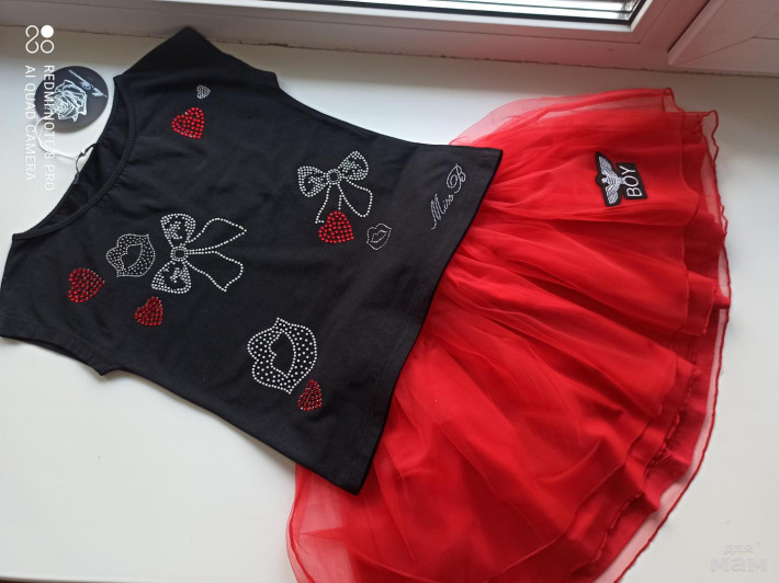 Шикарнейший комплект на яркую Принцессу! Всем любителям красного :) Размер 6 л, на рост 118-122 см отлично! Майки обе из одной дорогой коллекции бренда Италии - Miss Blumarine. Юбка из Лондона, марка тоже очень стильная и яркая! Все покупали в Европе до пандемии.
