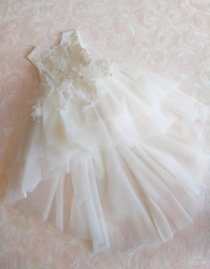 Белоснежное платье со шлейфом, расшитое стразами. Размеры ,7,8,10 лет. Цена 2990