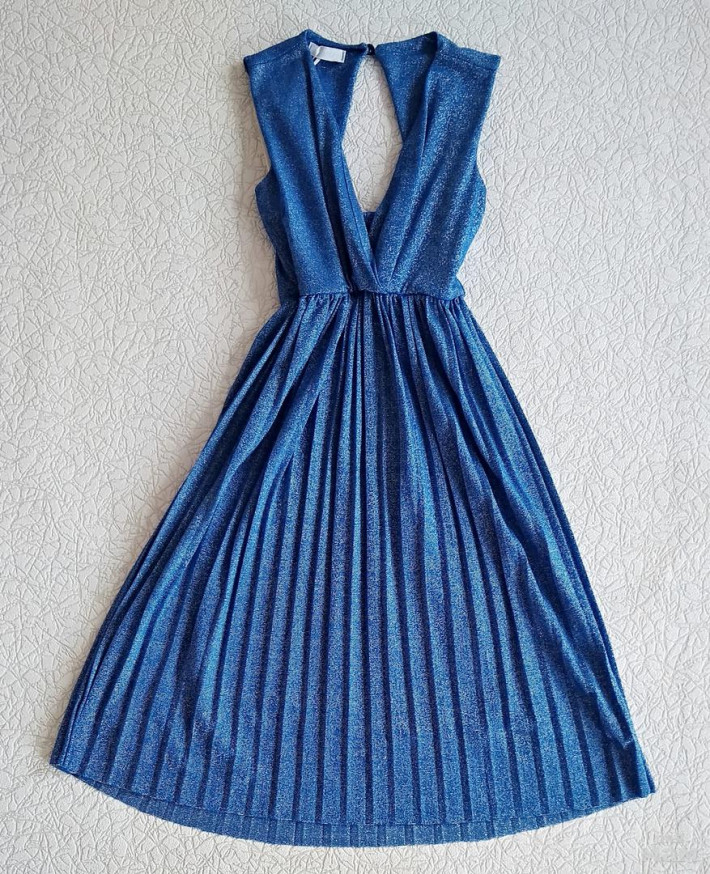 Платье-плиссе синее. Размеры 34,36,. Цена 1690
