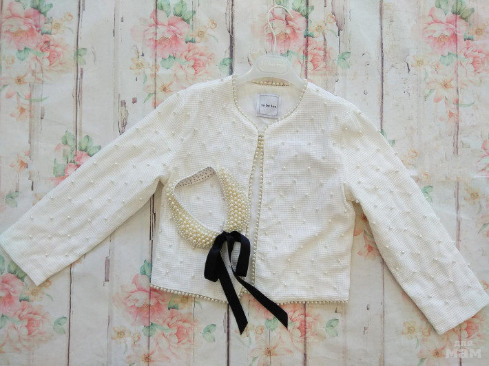 Классический жакет, украшенный бусинами в стиле "шанель", съемный воротничок. Размеры 34,36, Цена 1490