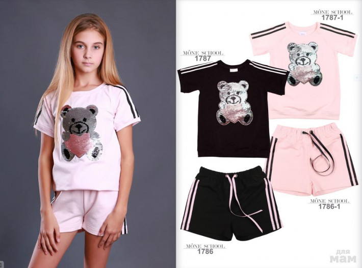 ЦВЕТ у шорт и кофты ЧЁРНЫЙ, футболка бледно розовая, паетки розово- серебро