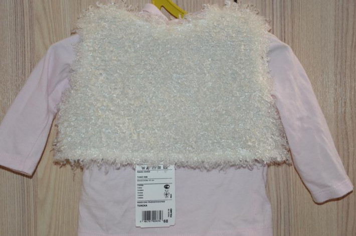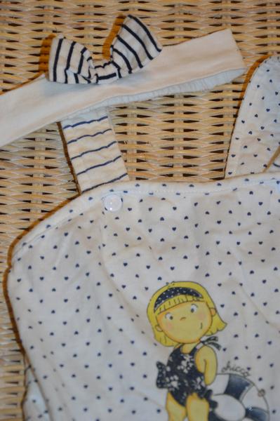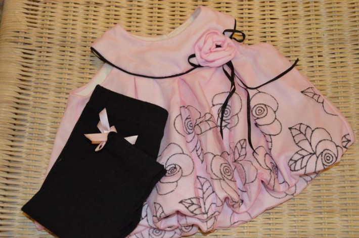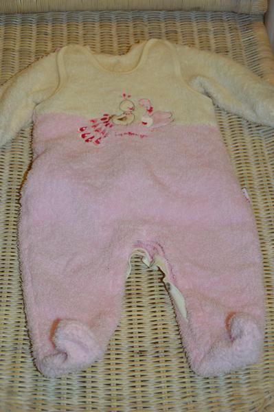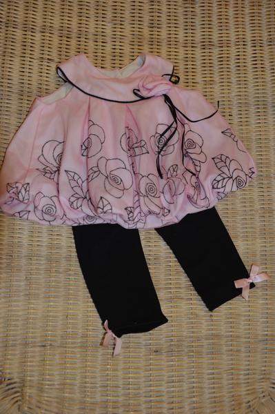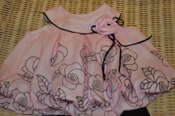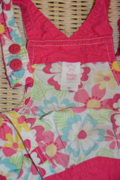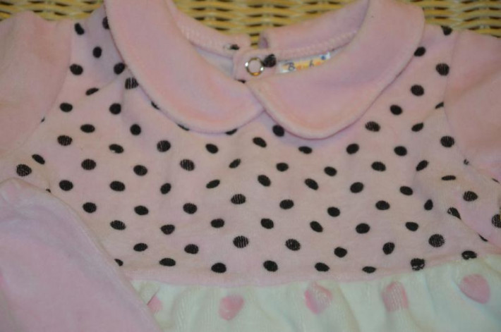 Р-р 3-6 мес. после стирки поблекли блестки на черной кайме (на розах), в остальном отл. состояние. 400 руб.