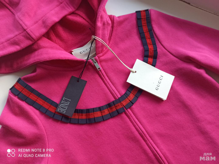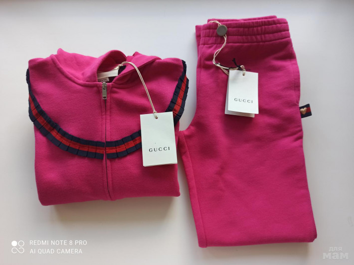 Абсолютно новый оригинальный костюм Gucci. Размер 8 лет, цвет фуксия. Перескочили за зиму. Покупала ОЧЕНЬ дорого. Прошу без торга. Куплен в Италии и отшит тоже там, что сейчас большая редкость.