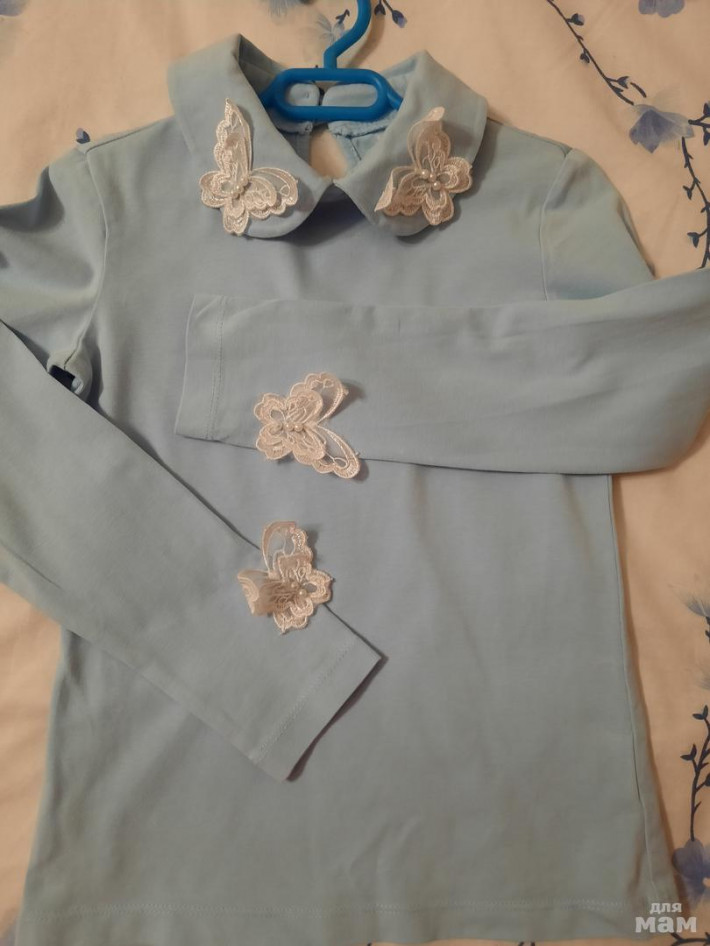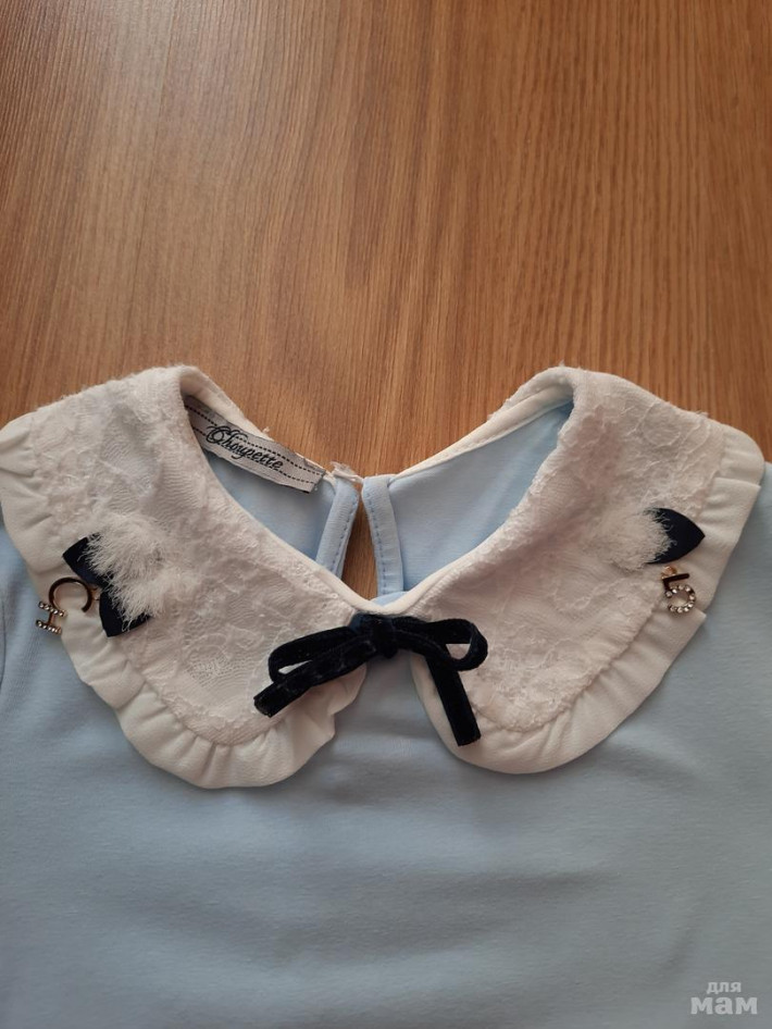 3. Блузка "Непоседы" цвет голубой,спереди с белым кружевом,б/у,цена: 400 руб ПРОДАНА