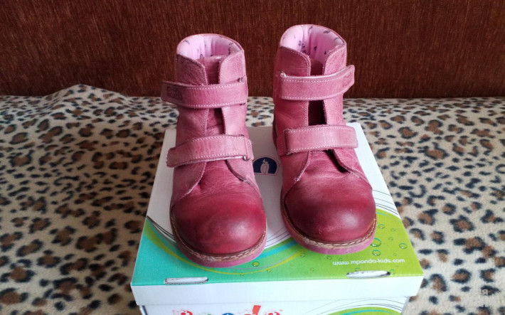 Кожанные демисезонные ботинки турецкой фирмы M. Panda ortopedic. Размер 30, стелька ортопедическая 20 см. Жесткий задник, каблук Томаса, высокие, на двух липучках. Б/у, состояние хорошее, потерты мысы, в глаза не бросаются. Покупала за 5500р. Ортопедически правильные. Внутри на текстильной подкладке. До холодной осени.