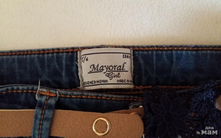 Джинсы Mayoral р. 6-116 см Испания. Джинса тонкая и мягкая, б/у состояние отличное. Покупала за 2510 р. в Даниэль. На стройную девочку. Джинсы спереди карманы обманки, украшены стразами и жемчугом, сзади 2 кармана, есть утяжка по талии, шаговый шов 54 см. Модель зауженная, сидит по ноге, смотрится супер. Цвет синий деним. Поясок не носили. Состояние отличное, толком и не носили. Наша любимая модель и фирма.