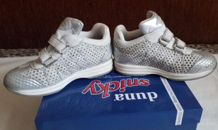 Кожаные кроссовки ортопедической фирмы Duna Италия. Размер . 30, стелька 20 см. Натуральная кожа с перфорацией, жесткая пятка. Съемная ортопедическая кожаная стелька Состояние хорошее, мысы потерты, в глаза не бросается, хороше держат голеностопный сустав. Подошва не стерта. Внутри полностью кожа. Фирма в рекламе не нуждается. Покупала за 11 000 р. в Винни. Отправляю в регионы.
