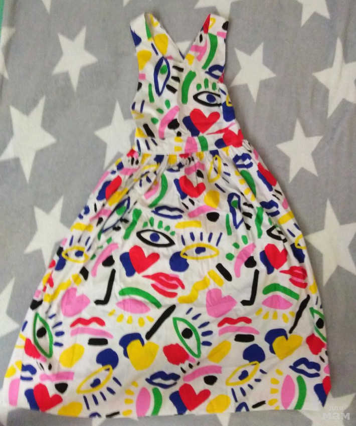 Крутой сарафан, Stella Mc'Cartney, р. 14 (от 155 до 175 см), 100% хлопок на жару, спина открытая, лямки не отстегиваются, соку молния. На худышку (в прошлом году дочери велик был, в этом - мал). Живые фото в посте.