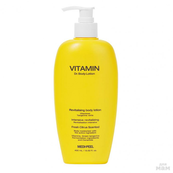 Липосомный витаминный лосьон для тела Medi-Peel Vitamin Dr.Body Lotion устраняет сухость и шелушения, повышает упругость кожи, делает ее нежной и бархатистой. Активно увлажняет и питает, поддерживает оптимальный уровень увлажненности в течение дня. Лосьон обладает роскошным цитрусовым ароматом, который остается на коже притягательным шлейфом.