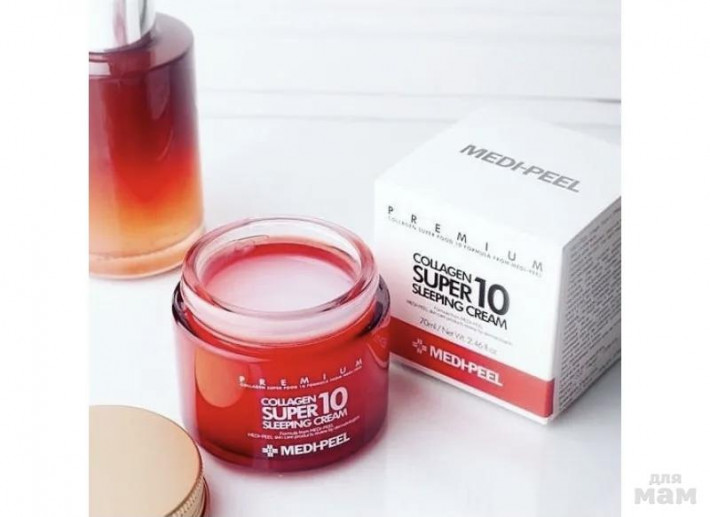 Омолаживающий ночной крем для лица с коллагеном Medi-Peel Collagen Super10 Sleeping Cream восстанавливает упругость и эластичность кожи, укрепляет тургор, подтягивает и формирует овал лица.