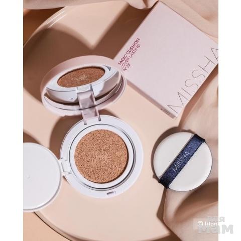 Тональное средство в компактной упаковке — тональный кушон с превосходным покрытием Missha Magic Cushion Cover Lasting. Средство обладает потрясающими маскирующими способностями и отлично справляется с маскировкой несовершенств кожи. Благодаря удобному пористому спонжу средство ровно ложится на кожу очень тонким слоем, делая макияж естественным. Тональный кушон содержит в своем составе сок бамбука и экстракт гамаммелиса, благодаря чему обладает успокаивающим кожу эффектом, контролирует работу сальных желез и препятствует появлению жирного блеска в области Т-зоны.