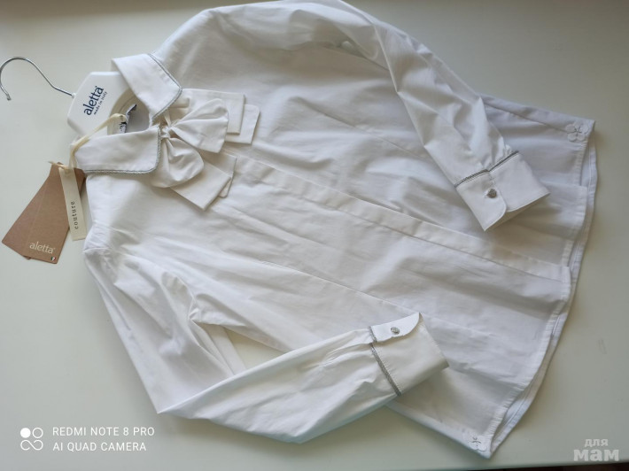 Очень интересная и комфортное комбинирование тканей у рубашки - Перед,ворот, бант и рукава стандартный хлопок как у всех блуз, а спинка - трикотаж.