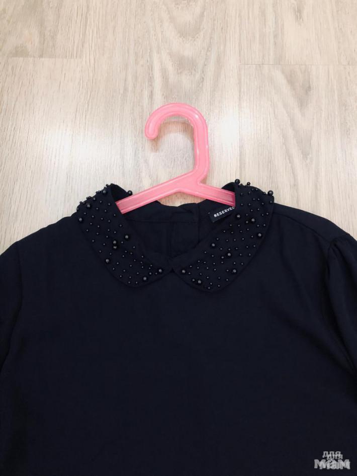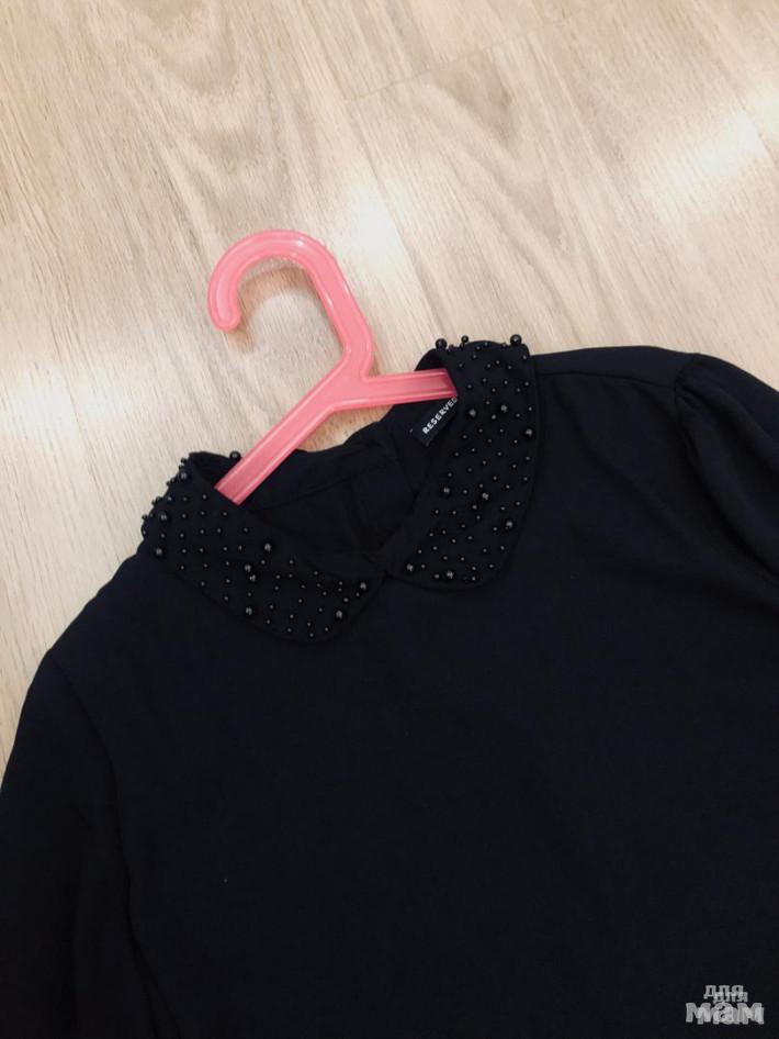 Черная блузка Reserved, воротник весь украшен черными бусинками, р.158 б/у в хорошем состоянии Рукав 58, длина 57, под мышками 44