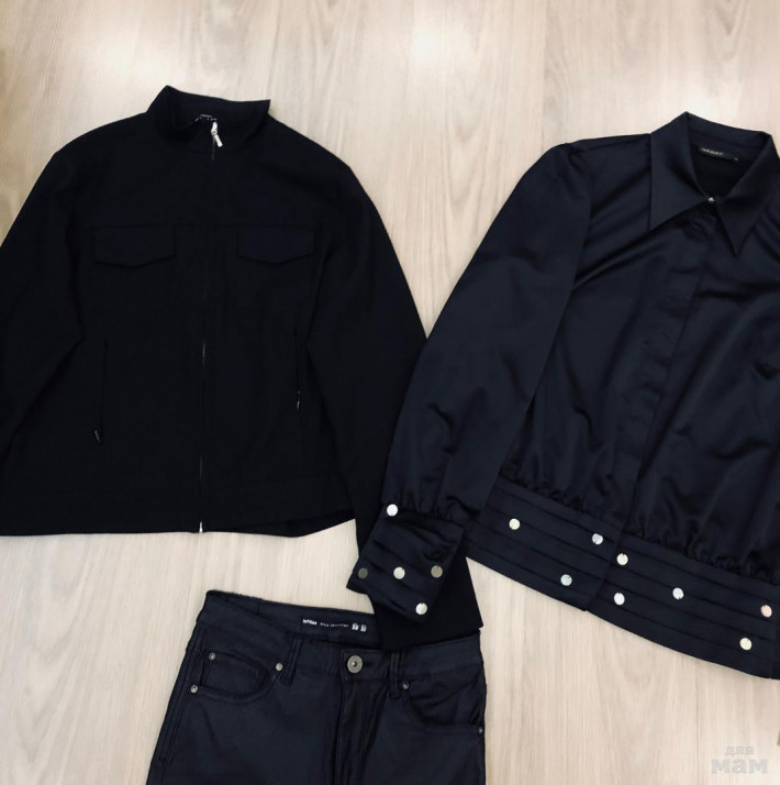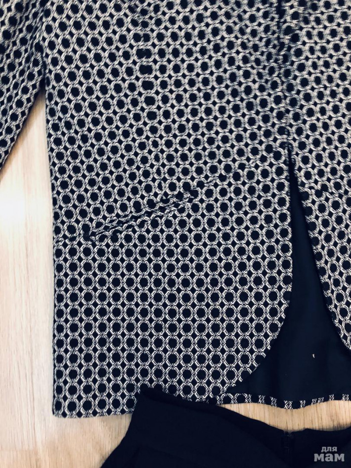 Черный пиджак Stradivarius р.S (длина 74, рукав укороченный 53, под мышками 40), брюки черные Topshop, р.8 (шаговый 67, длина 95, талия 33 - резинка, бедра 44), все в состоянии нового, одевали пару раз, комплект 2500 р. (отдельно пиджак 2000 р.) ПРОДАНО