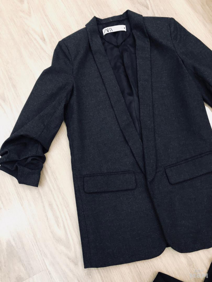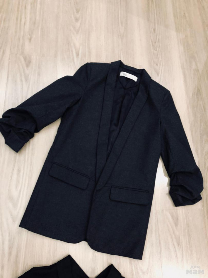 Новый пиджак Зара темно-серый, р.ХS, очень стильный рукав укороченного фасона, сжатый длина 48, длина пиджака 48, талия 43, под мышками 44