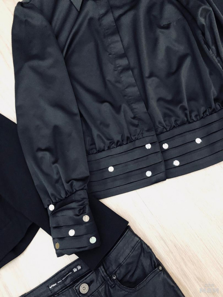 Новая итальянская черная атласная блузка Shendel, р.42, с украшениями, манжеты, очень нарядная, рукав 60, талия 44, длина 64