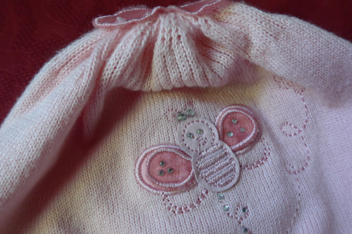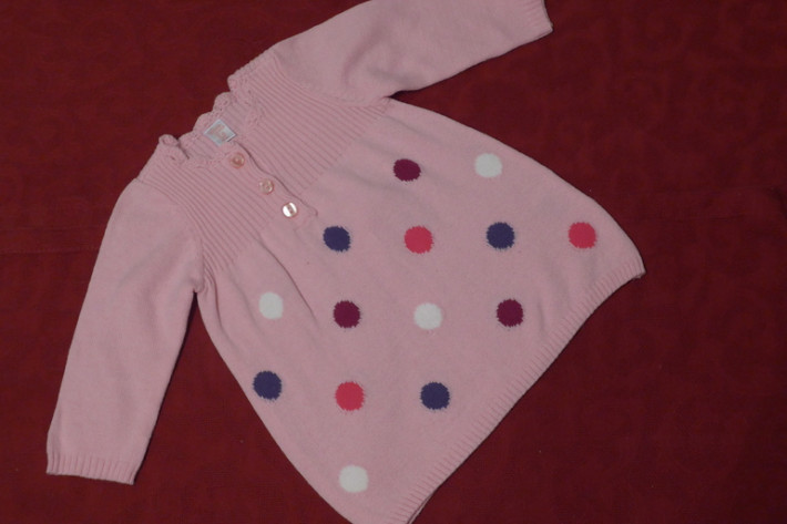 2. Нежный тонкий свитерок в стиле Monnalisa , р .62-68 . Одевать удобно, горовинка сзади на кнопочке, стильный дизайн стразики ))). Состояние новой вещи . Цена 650 рублей (стоил 1200)