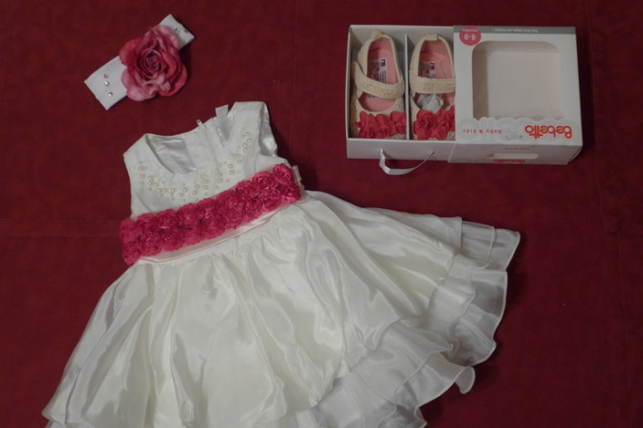18. Платье 3- 6 месяцев . Рост 68-74 Состояние новой вещи, одето 1 раз на фотосет. Цена 650 рублей. Платье продаю без повязки-цветка на голову, ее покупала отдельно.Есть пинетки новые (Цена 500 рублей)