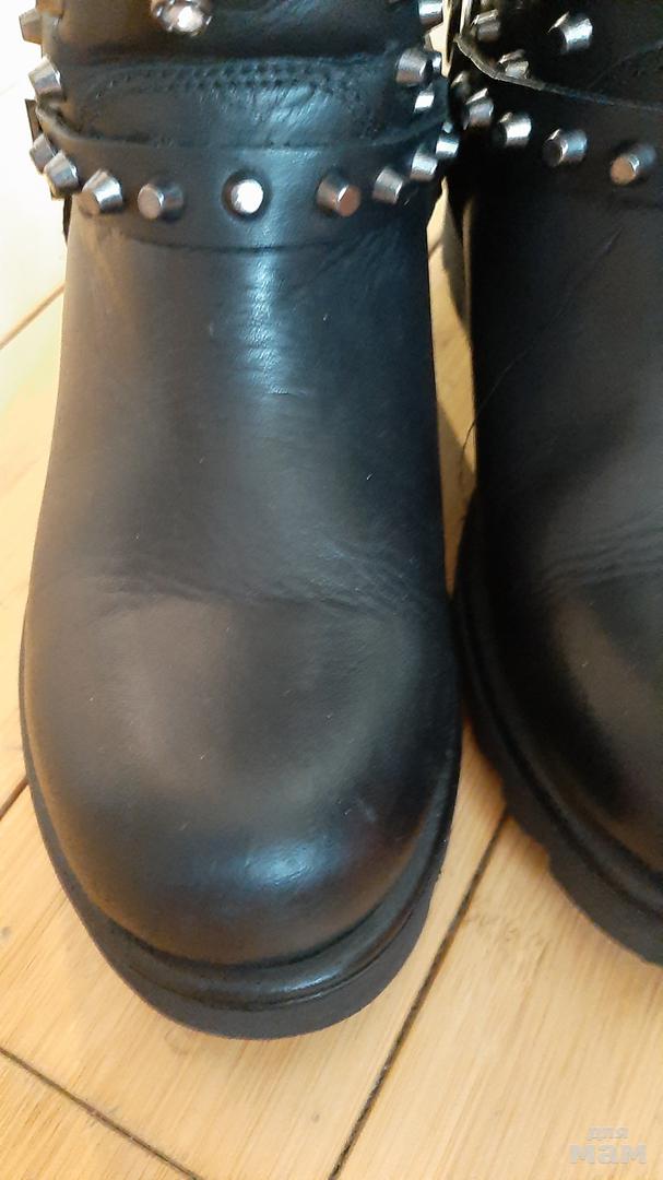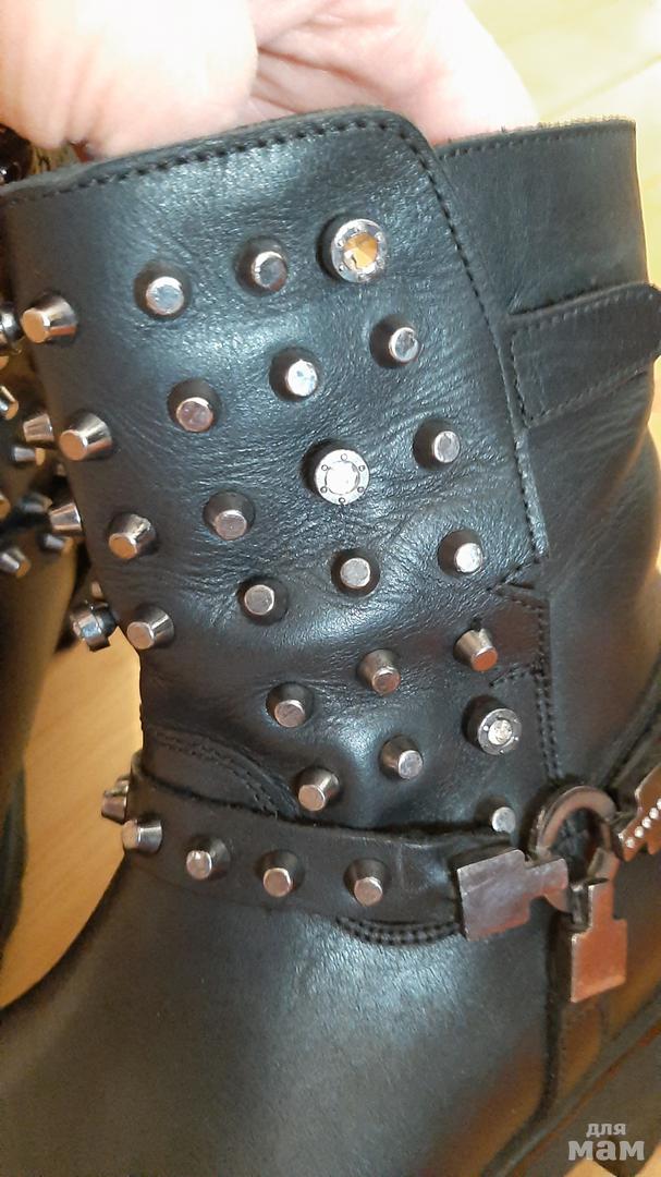 осенью успели лишь немного поносить, сейчас малы( в двух шипах не хватает стеклянного глазка, не заметно совсем. Если почистить кремом , будут как новые