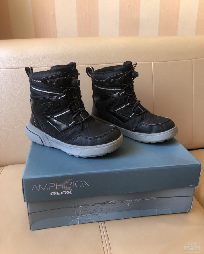 Отличные зимние / демисезонные сапоги известного бренда Геокс. Состояние хорошее, имеются незначительные малозаметные потертости на носах. Мембрана + искусственный мех. Стелька - 20-20,5 см