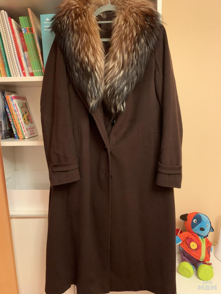 Отличное состояние. 100% натуральная шерсть. Натуральный мех. Есть ремешок на пояс. Из нюансов, необходимо перешить петельки у ворота (растянулись в некоторых местах).