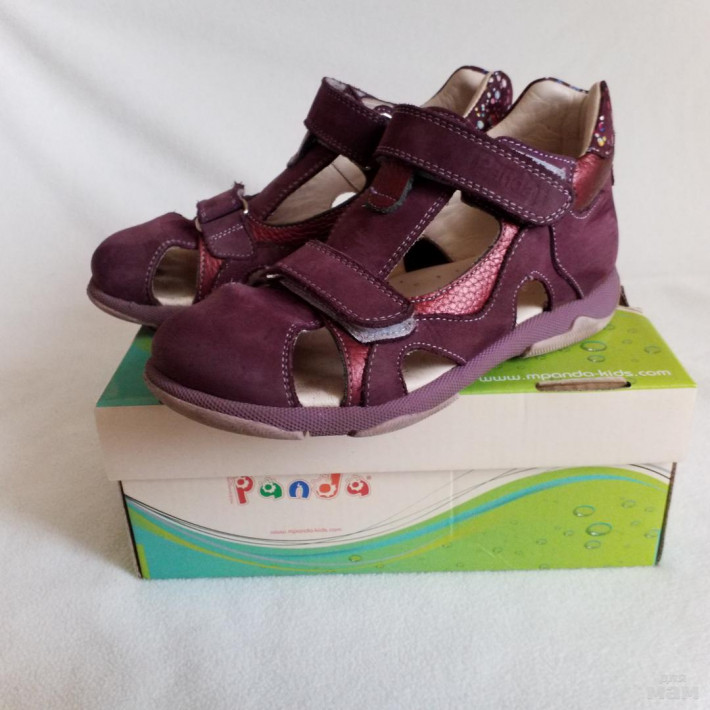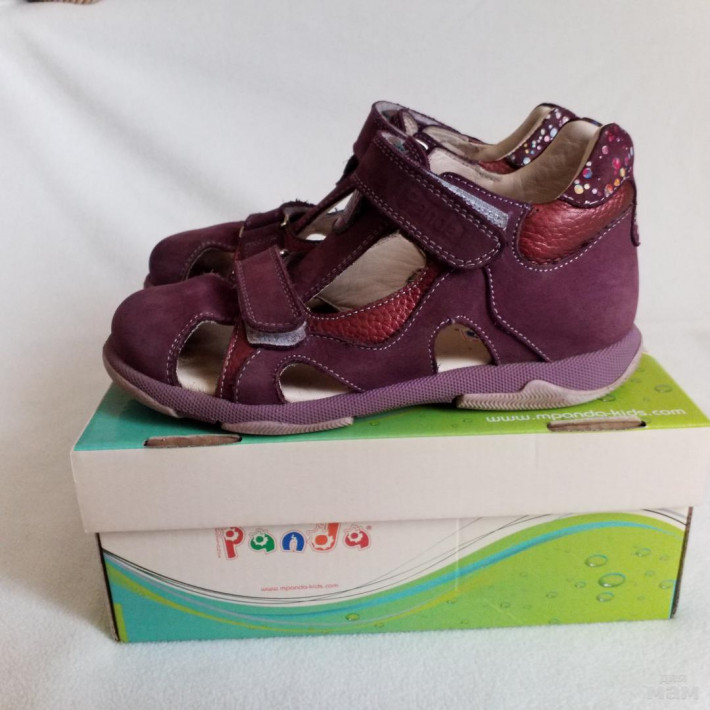 Сандалии M. Panda ortopedic р. 30 Турция. Натуральная кожа. Верх натуральный нубук, всегда приглядный вид, щёточкой почистил и ок. Ортопедическая кожаная стелька. Большемерят. В коробке. Покупала за 4500р. стелька 20 см. Цвет сливовый, бордовый, винный. Б/у, пятки не замяты, состояние очень хорошее. Носили в Детском саду около месяца, потом улетели отдыхать, а прилетев оказались малы. Ортопедические свойства сохранены полностью. Стелька чистая.Наша любимая фирма.