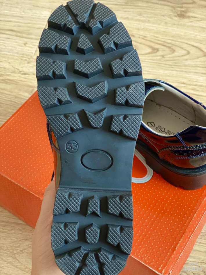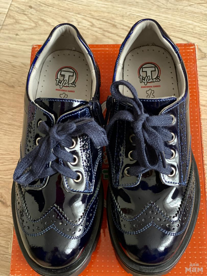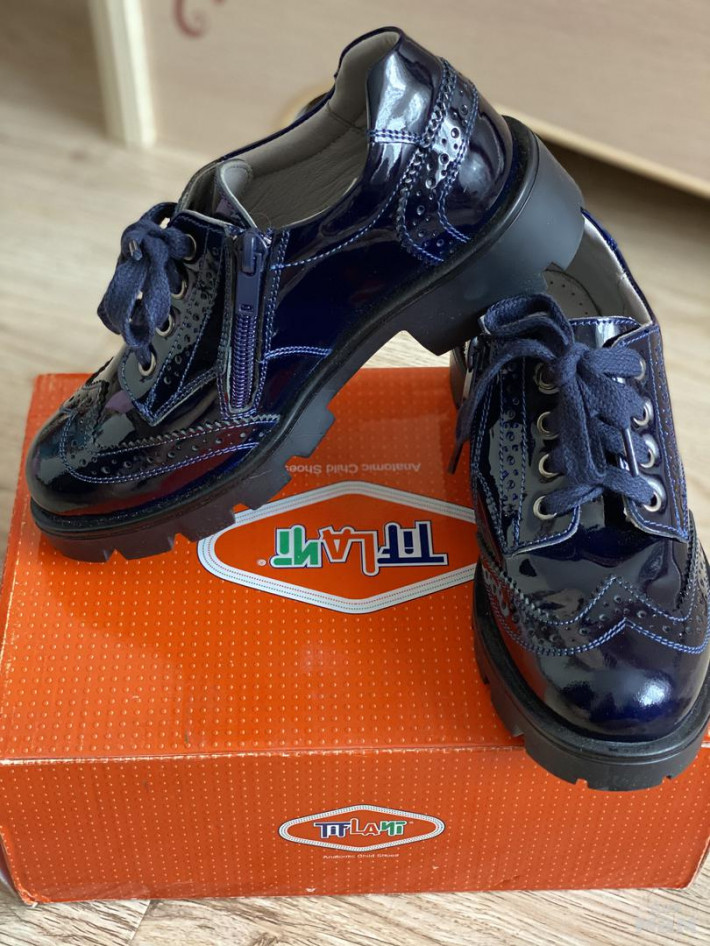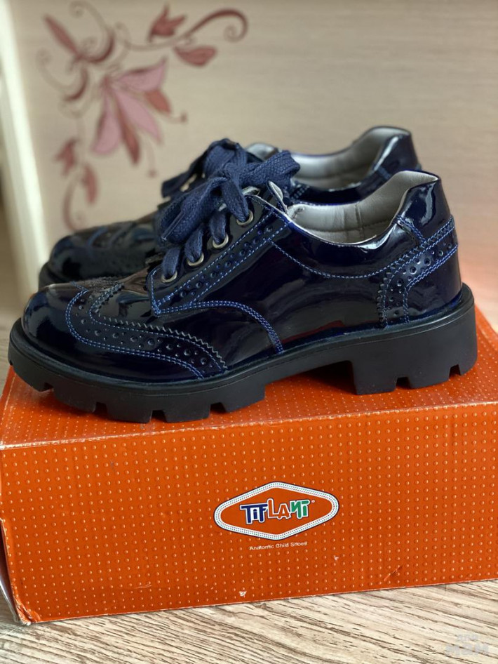 Новые. Натуральная кожа, лак, цвет темно-синий, размер 33.