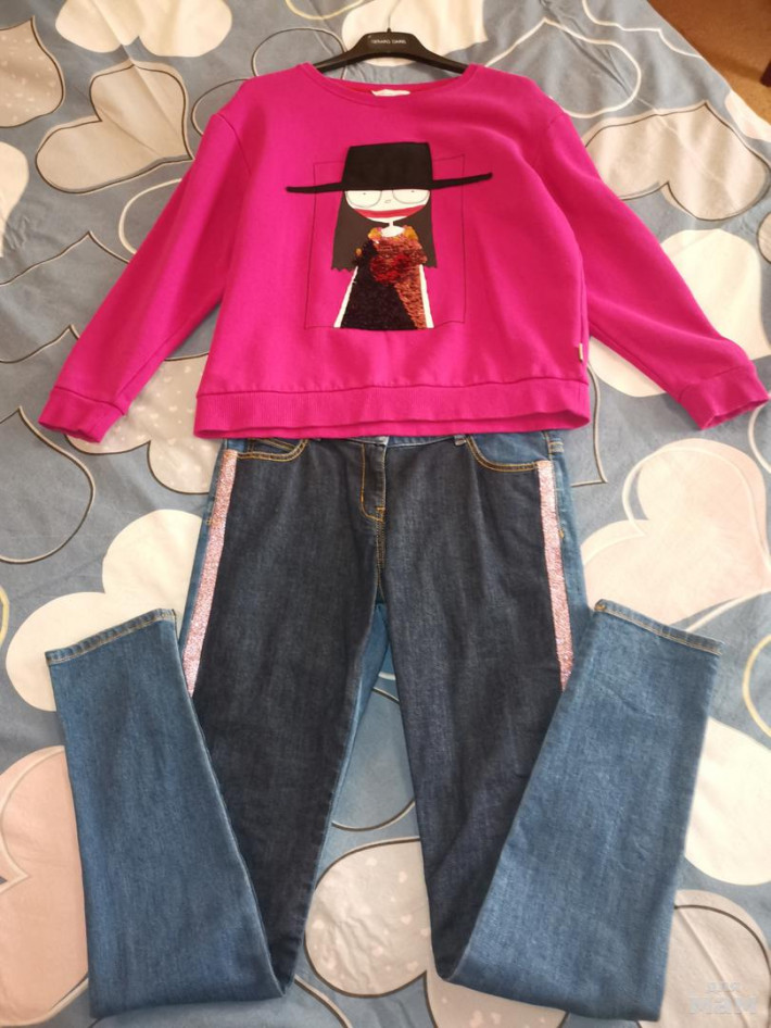 Комплектом на 12+ в отличном состоянии!!! . Джинсы синие с обратной стороны голубые. На рост до 156см!