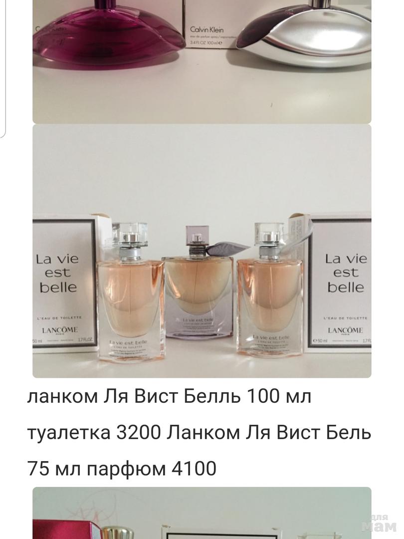 ланком Ля Вист Белль 100 мл туалетка 3200 Ланком Ля Вист Бель 75 мл парфюм 4100
