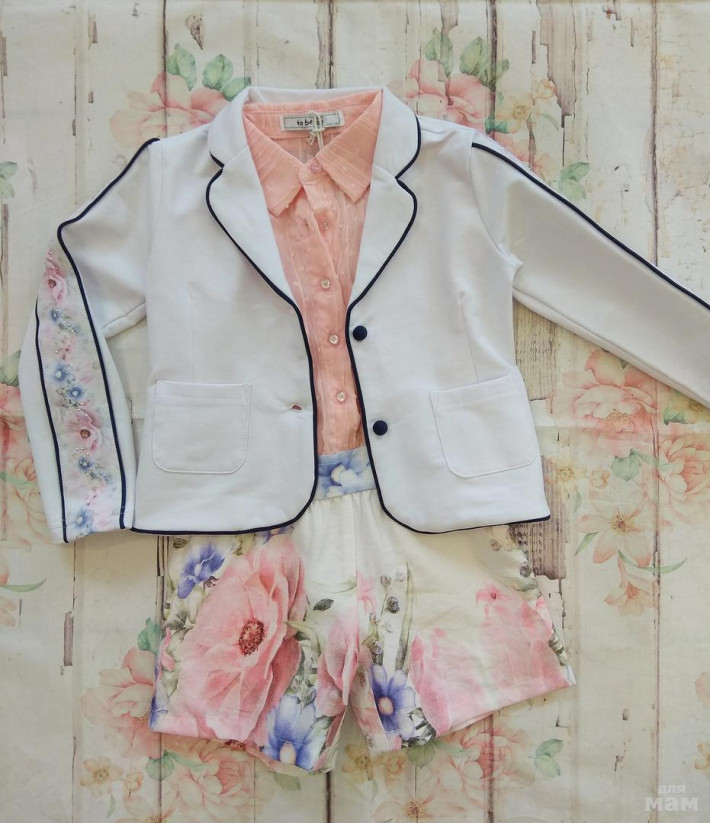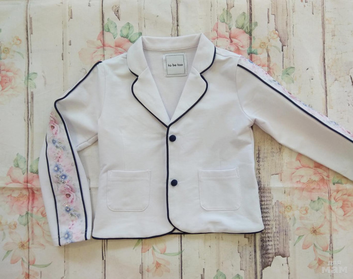 Белый жакет с цветами на рукавах. Размеры ,26,28,30,32 Цена 1990