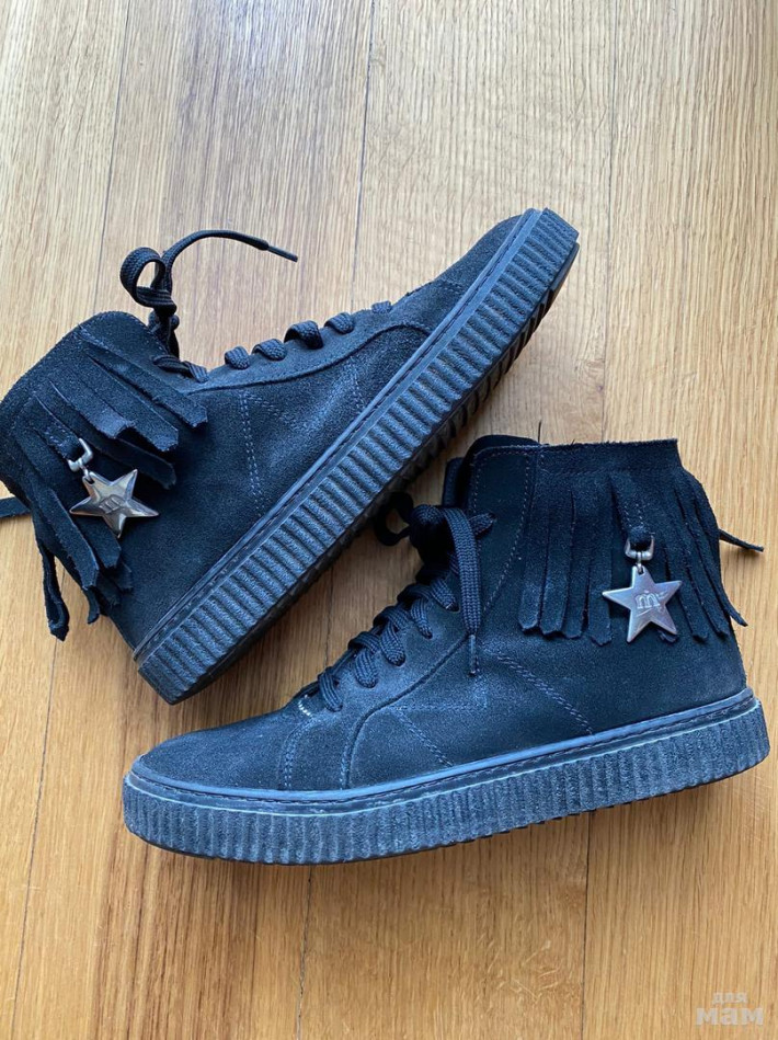Итальянские ботинки из натуральной замши Melania в отличном состоянии. Размер: 40, это бренд детской обуви. Носила дочь подросток. Цвет: чёрный. Удобные, стильные, мягкие. Состояние без нюансов. Цена: 1500 руб.