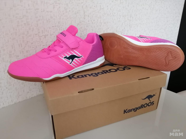 4)Кроссовки для девочки на р 37(KangaRoos Германия ). Цвет ярко розовый.Верх:кож.заменитель и текстиль.Внутри :текстиль.Стелька вынимается.Дл стельки 24см. Цена 2600 руб