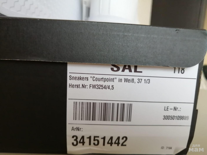 5)Кроссовки для девочки на р 36(Adidas) Цвет белый.Верх: натуральная кожа.Внутри :текстиль.Стелька вынимается.Дл стельки 23,5см. Цена 3000 руб