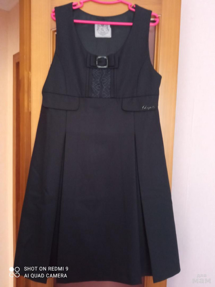 Сарафан на подкладке, сбоку вшита молния, талия регулируется. В отличном состоянии, б/у редко. Без затяжек и катышек. Размер 134.