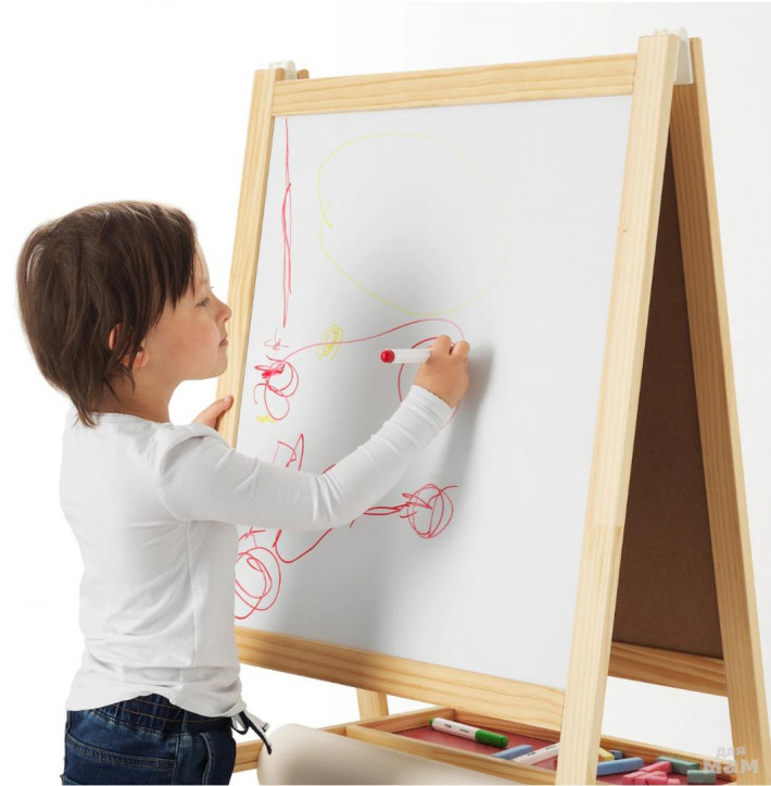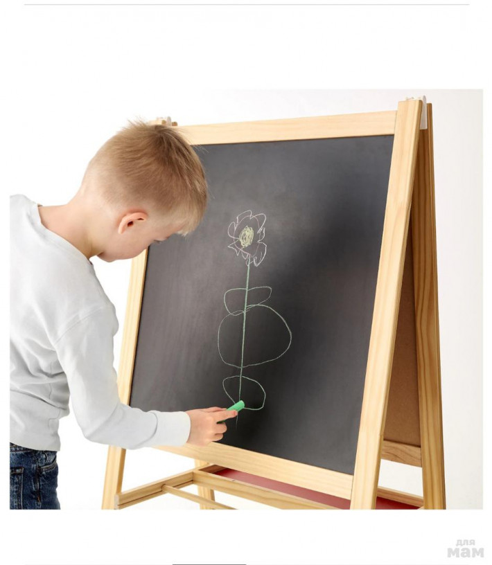 Доска-мольберт (б/у) в хорошем состоянии.Если рисовать, то как настоящий художник! Выберите подходящий фон картины — черную или белую доску. Двусторонний мольберт; на черной стороне можно рисовать мелками, а на белой – фломастерами.Складной; удобно хранить.
