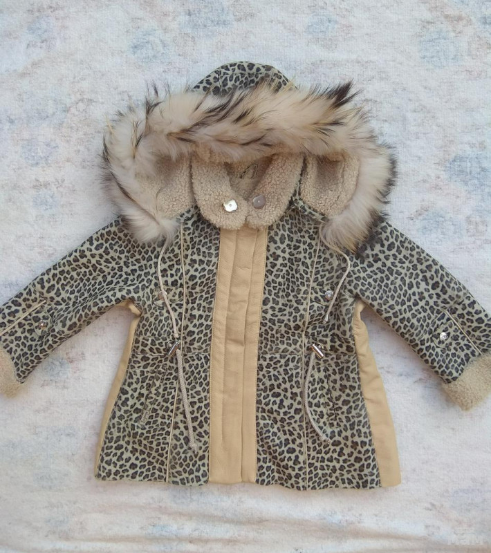 Дублёнка р.116 см. Натуральный мех, капюшон отстёгивается. В хорошем состоянии.
