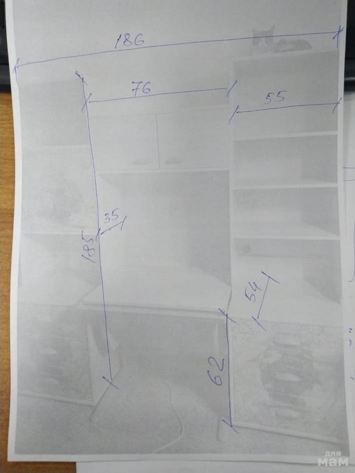 Размеры (см): ширина 186; высота 185; глубина 35; глубина тумбочки 54. Состояние отличное.