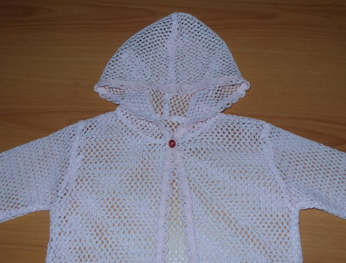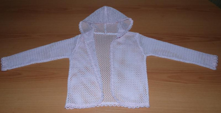 Накидка вязаная с капюшоном на девочку в отличном состоянии.