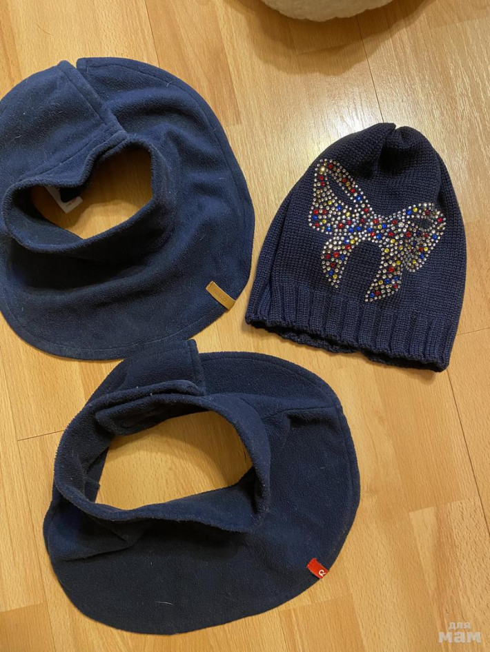 2. СИНЯЯ шапка от Витадимки НОВАЯ 700руб деми + в подарок манишка